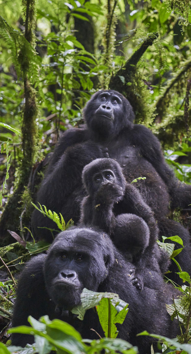 Denna förmiddag spenderar ni med att spåra en familj av gorillor. Detta är kanske höjdpunkten på er resa och chansen att se gorillor är nästan 100%. Parkvakter och guider vet alltid var gorillorna är. Dagens vandring genom den orörda regnskogen tar mellan 3 och 8 timmar, beroende på var gorillorna befinner sig. Det svala och fuktiga klimatet i bergsregnskogen är behagligt, nattemperaturen kan sjunka till cirka 10-12 grader. Ni klär er för dagen, börjar tidigt och tar med er en härlig lunch som ni äter ute i skogen. Men kom ihåg detta innan ni börjar vandringen: det är viktigt att inte slänga skräp, spotta på marken eller på annat sätt agera så att dessa sällsynta djur får sin livsmiljö förstörd. Åldersgränsen för gorillasafari är 15 år.