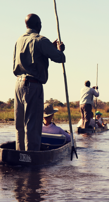 Ljudlöst glider ni fram i klassiska mokoros (kanoter) genom deltat och utfroskar de små öarna både med båt och till fots. På kvällen slår ni läger och bjuds på fantastisk middag i vildmarken lagad över en öppen eld. Resan fortsätter vidare med en mer klassisk safariupplevelse i utkanten av Okavangodeltat, en av världens bästa platser för den klassiska safariupplevelsen.