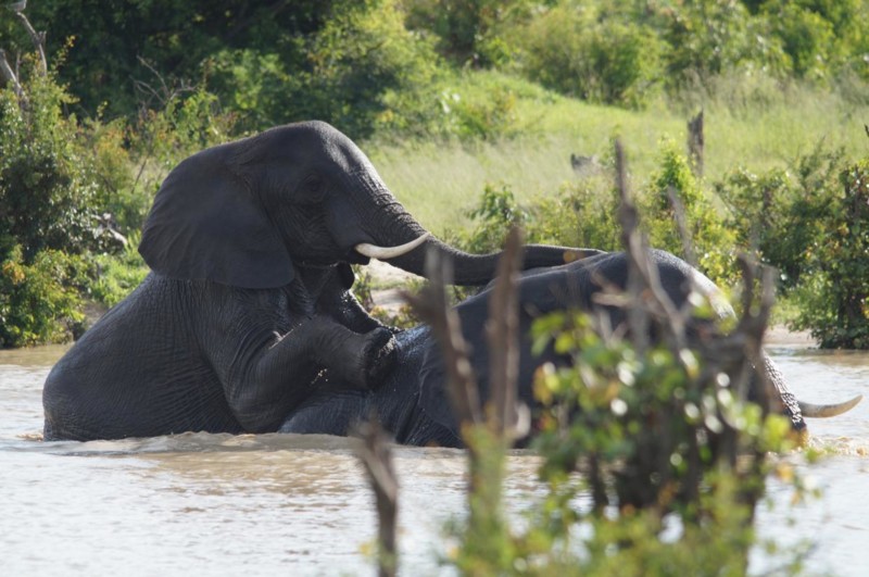 Hwange Nationalpark är en av Zimbabwes mest kända parker och sträcker sig över 14,651 km2. I Hwange lever över 100 olika däggdjursarter och över 400 olika fågelarter har observerats i parken. Efter en trevlig lunch väntade eftermiddagssafari. Vi fick se elefanter som svalkade sig i ett vattenhål. I skymningen stannade vi till för en sundowner, inte långt bort gick zebror, gnuer och antiloper och betade. Det hann bli mörkt på vägen tillbaka så det var lite extra spännande att kolla efter lysande ögon i bushen, vi fick se giraffer men även eldflugor som blinkade till i mörkret. När vi kom tillbaka till lodgen var lägerelden tänd och vi åt en god middag med managern och hans familj. Vi sov alla gott i en väldigt bred säng.