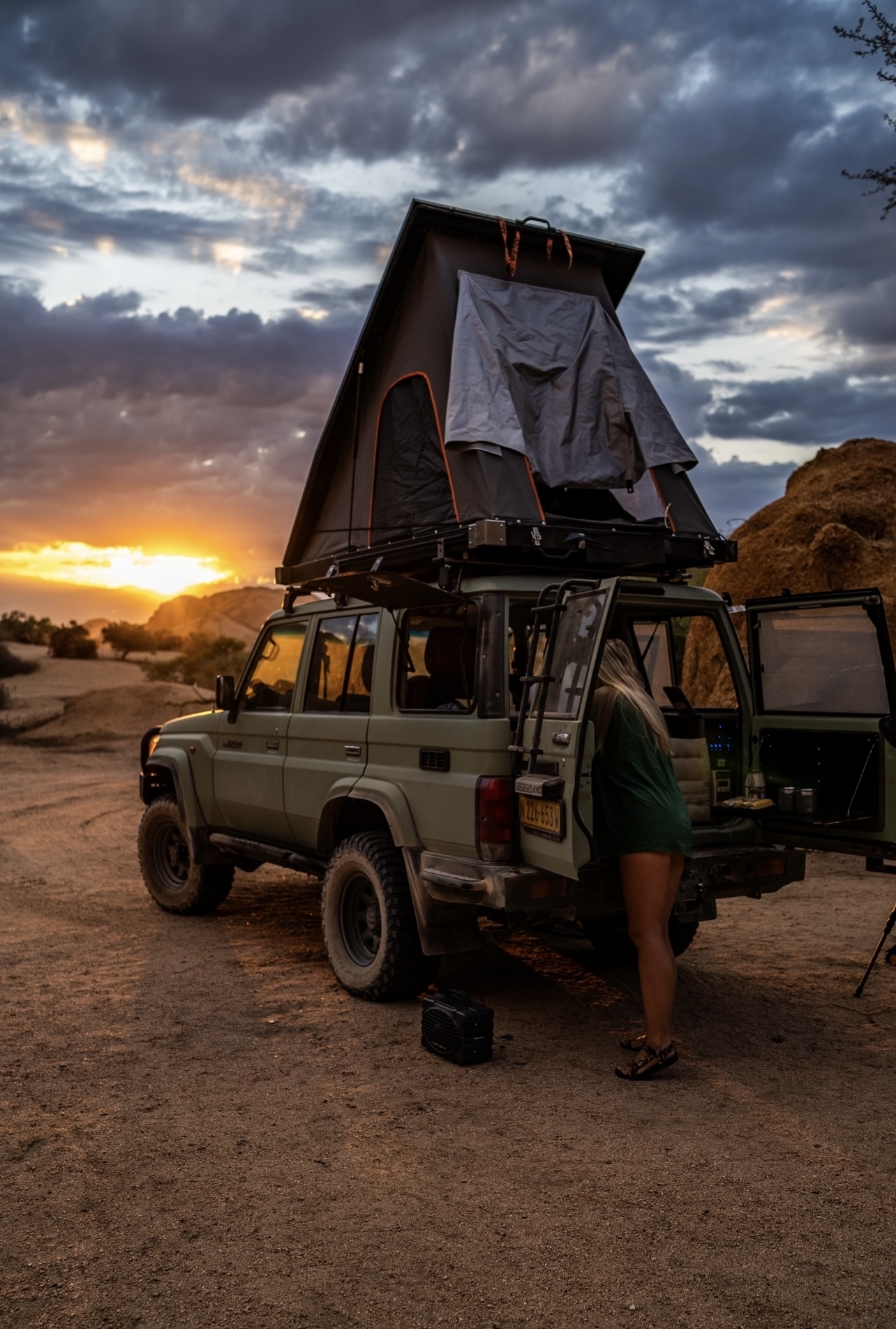 - Tält på taket och nödvändig campingutrustning