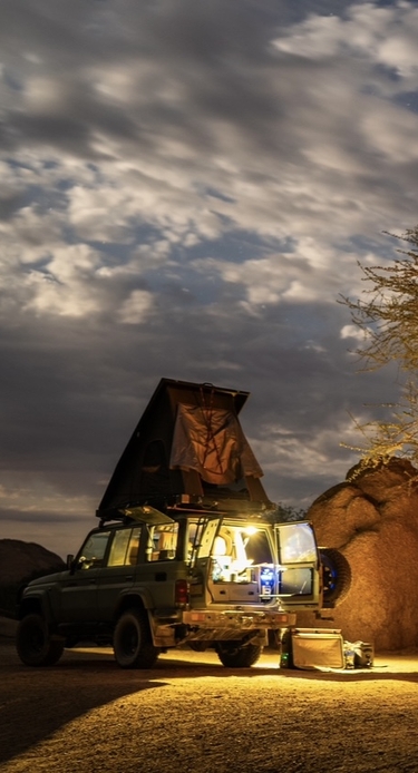 Idag lämnar ni kustklimatet i Swakopmund till förmån för det otroliga bergsområdet i Spitzkoppe. Körningen tar cirka 2 timmar så ni kan köra i ert eget tempo, antingen ger ni er av tidigt på morgonen eller på eftermiddagen. Vid ankomsten rekommenderar vi definitivt att utforska området till fots. Det här är verkligen en fantastisk plats om du gillar bergsvandringar. Ta med er en drink eller två, klättra upp på de stora stenblocken och njut av solnedgången och blicka ut över den fantastiska naturen.