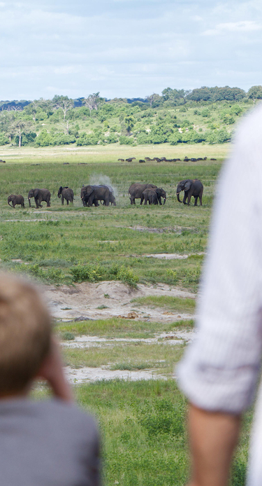 Chobe kännetecknas av frodiga flodstränder som lockar många djur, inklusive hjordar av antiloper och enorma elefantfamiljer, följt av smygande rovdjur som lejon och afrikanska vildhundar.