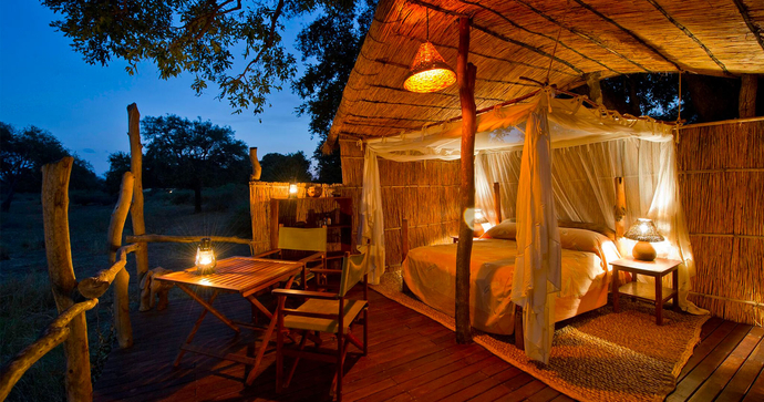 Njut av de lugnande ljuden från bushen medan du kopplar av och tar in den vackra naturen och det otroliga djurlivet. Se elefanthjordar korsa floden, giraffer, antiloper och vildsvin som kommer för att dricka, flodhästar som badar och apor som skränar i träden. Om du har tur kan du se kattdjur gå längs sanden eller vila i skuggan av träden medan de letar efter sin nästa måltid. Ta ett dopp i den uppfriskande poolen eller njut av en kall dryck i baren.