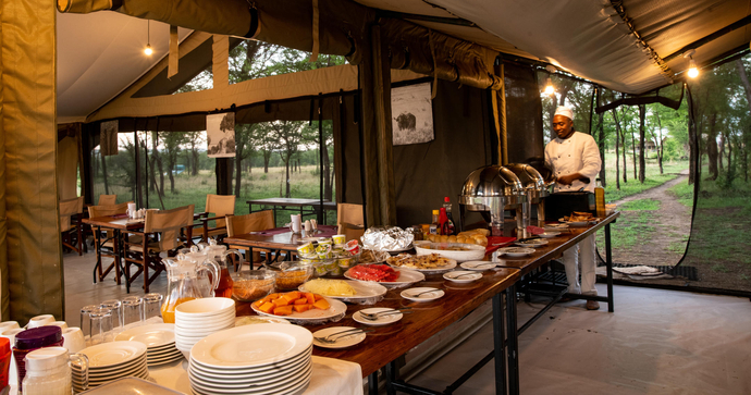Mitt på dagen njuter ni av en avkopplande picknicklunch ute i parken eller äter en varm lunch på er camp. Under eftermiddagen väntar safariupplevelser på savannen eller avkoppling på er camp. Kvällarna avslutas runt den öppna elden, till ljudet av savannen.