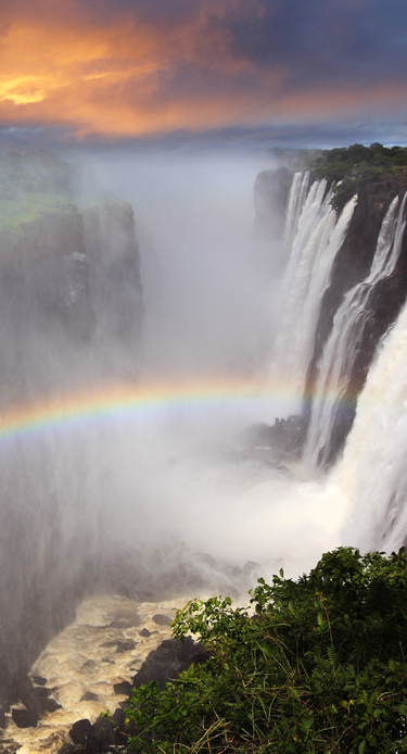 Upplev det bästa av de spektakulära Victoriafallen! Här får ni en guidad tur och en solnedgångskryssning på den imponerande Zambezifloden.